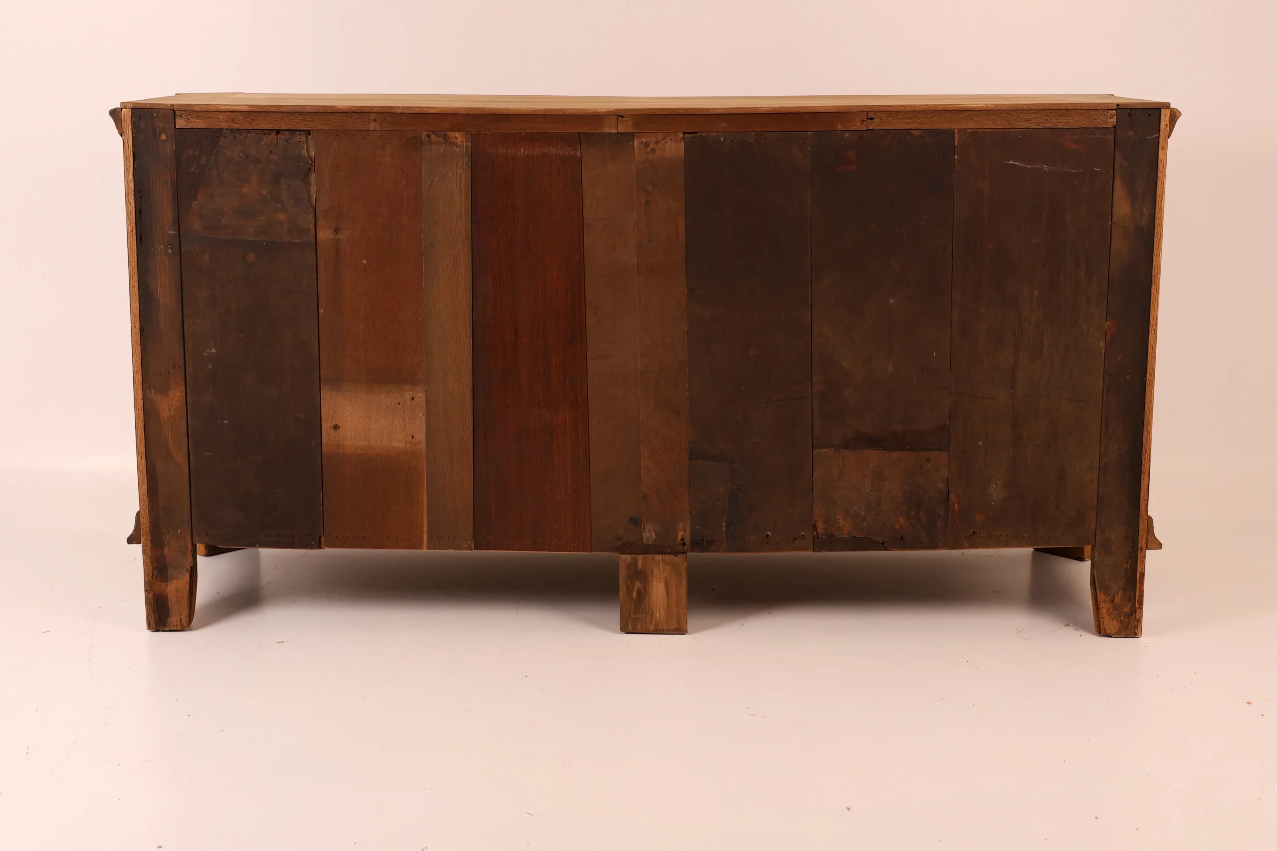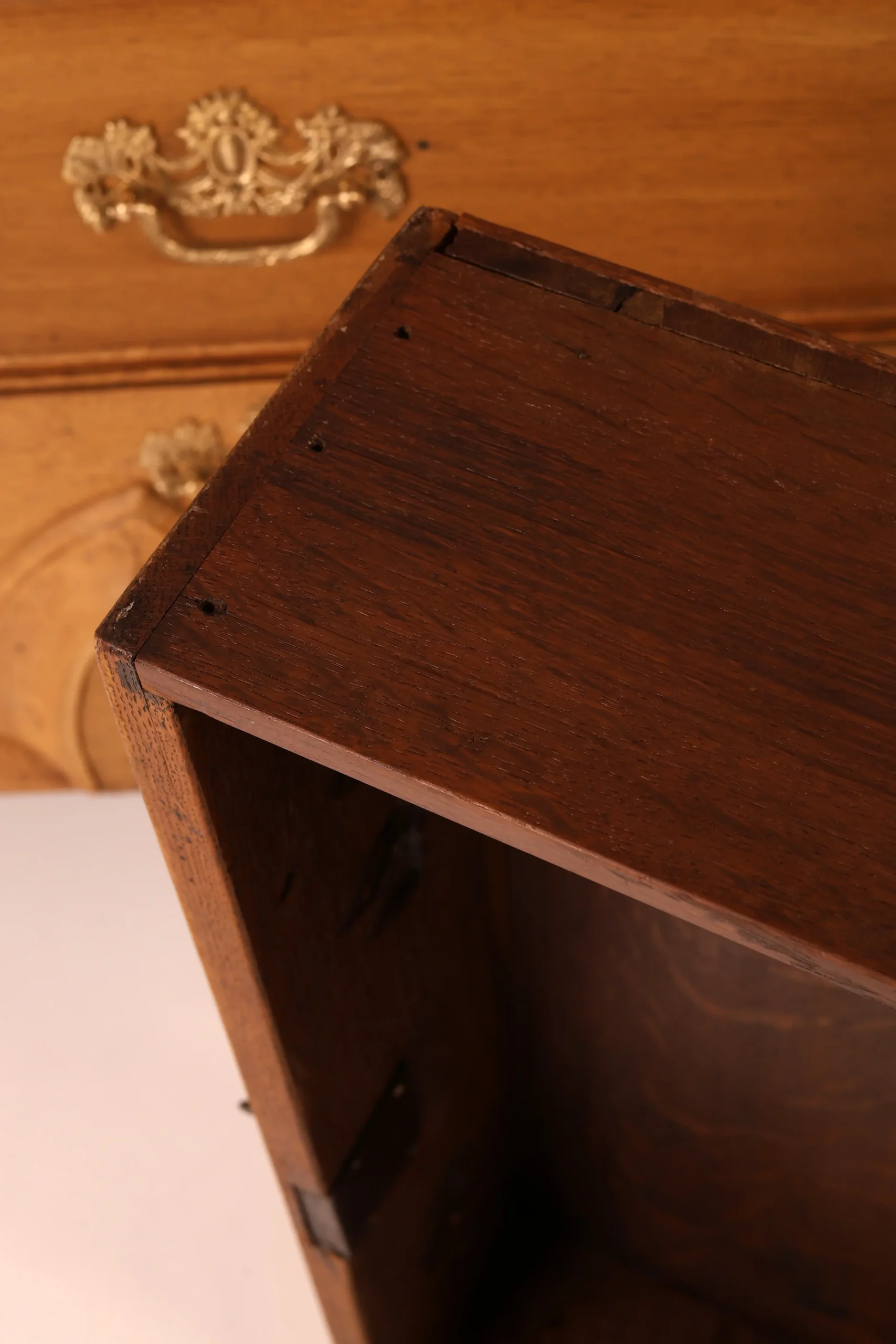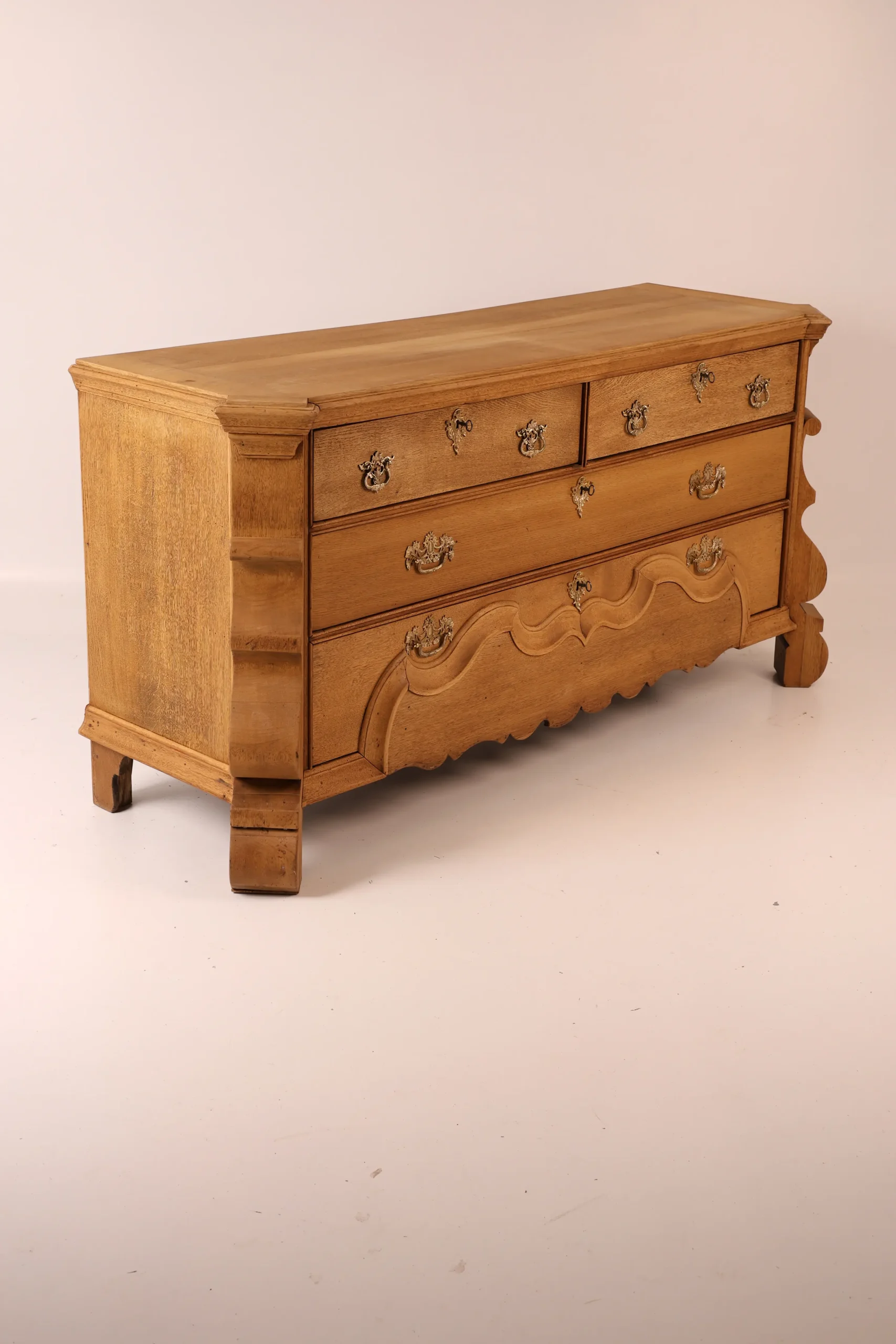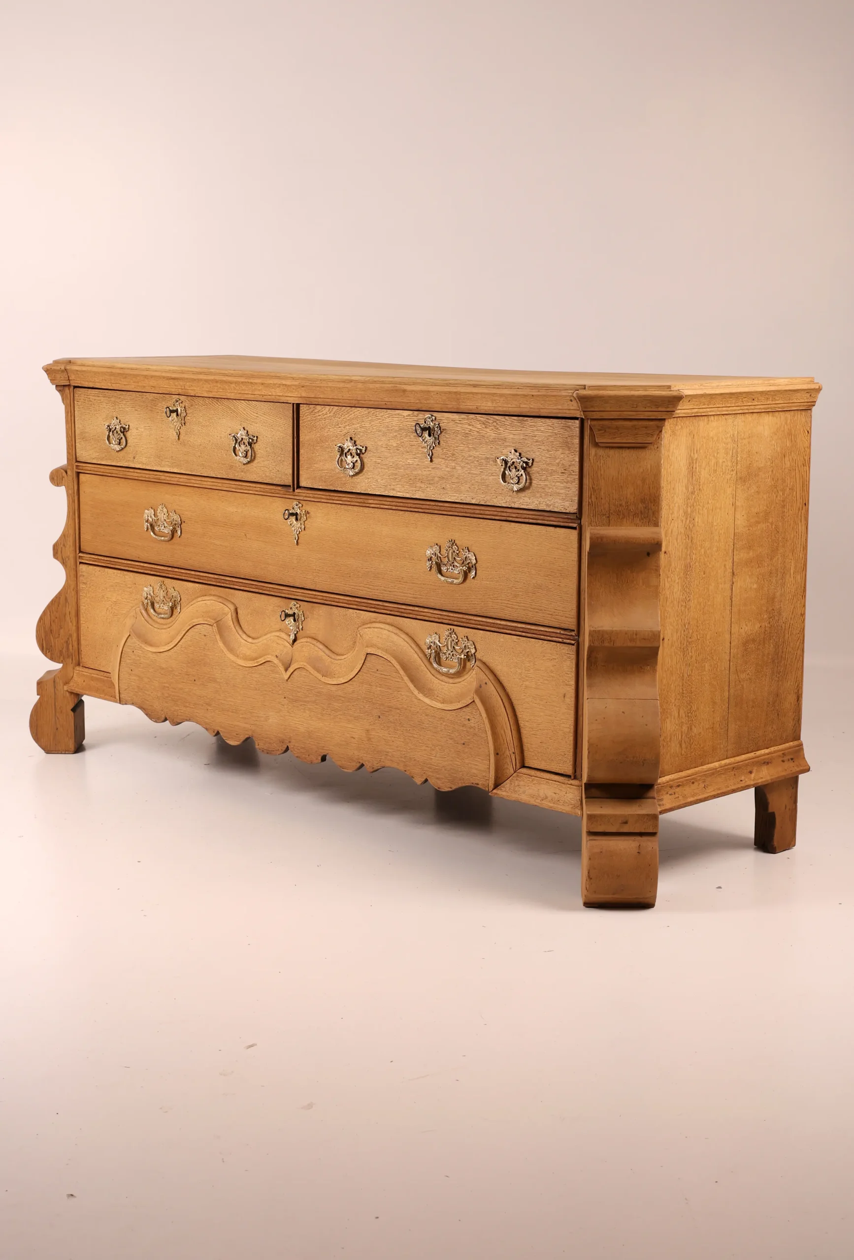 18th-century Dutch Baroque commode from the Netherlands, crafted from solid light oak with a bleached finish. The piece features a serpentine front and well-balanced proportions typical of Dutch Baroque furniture of the period.