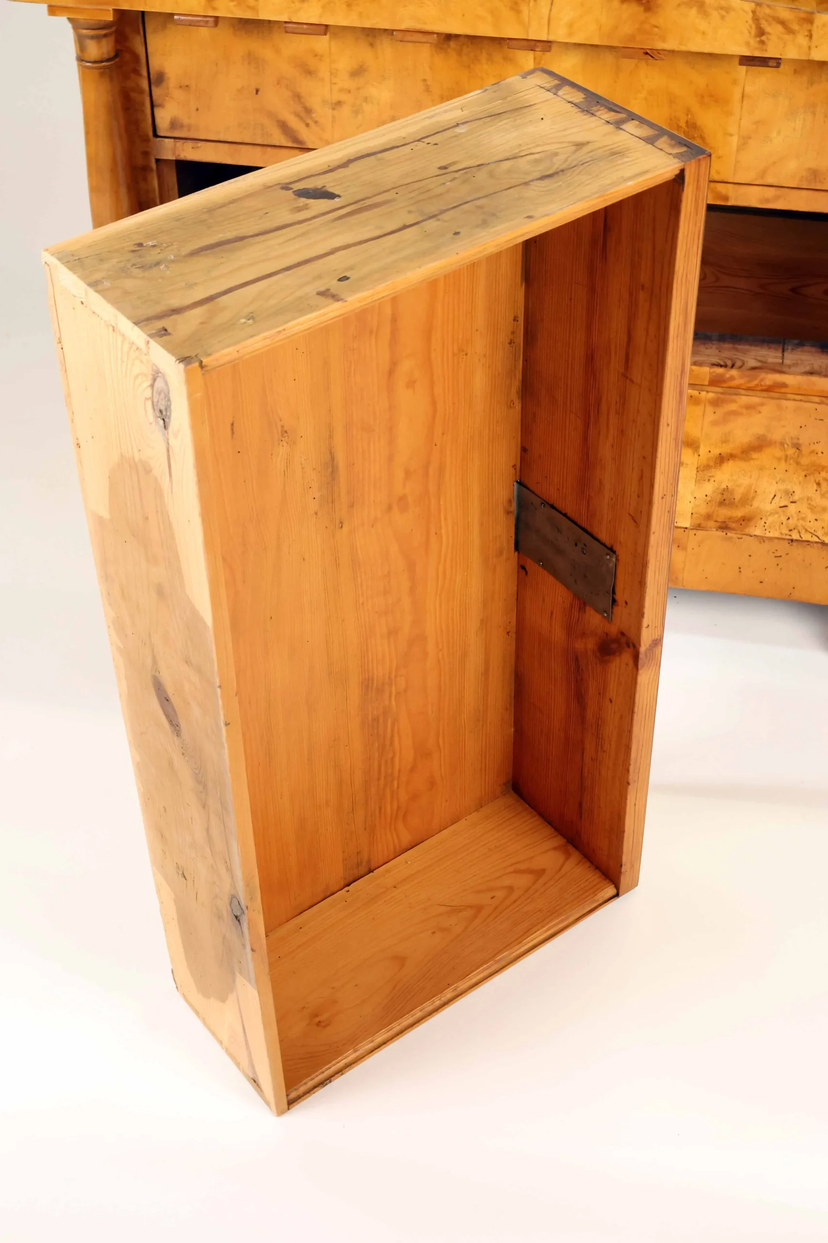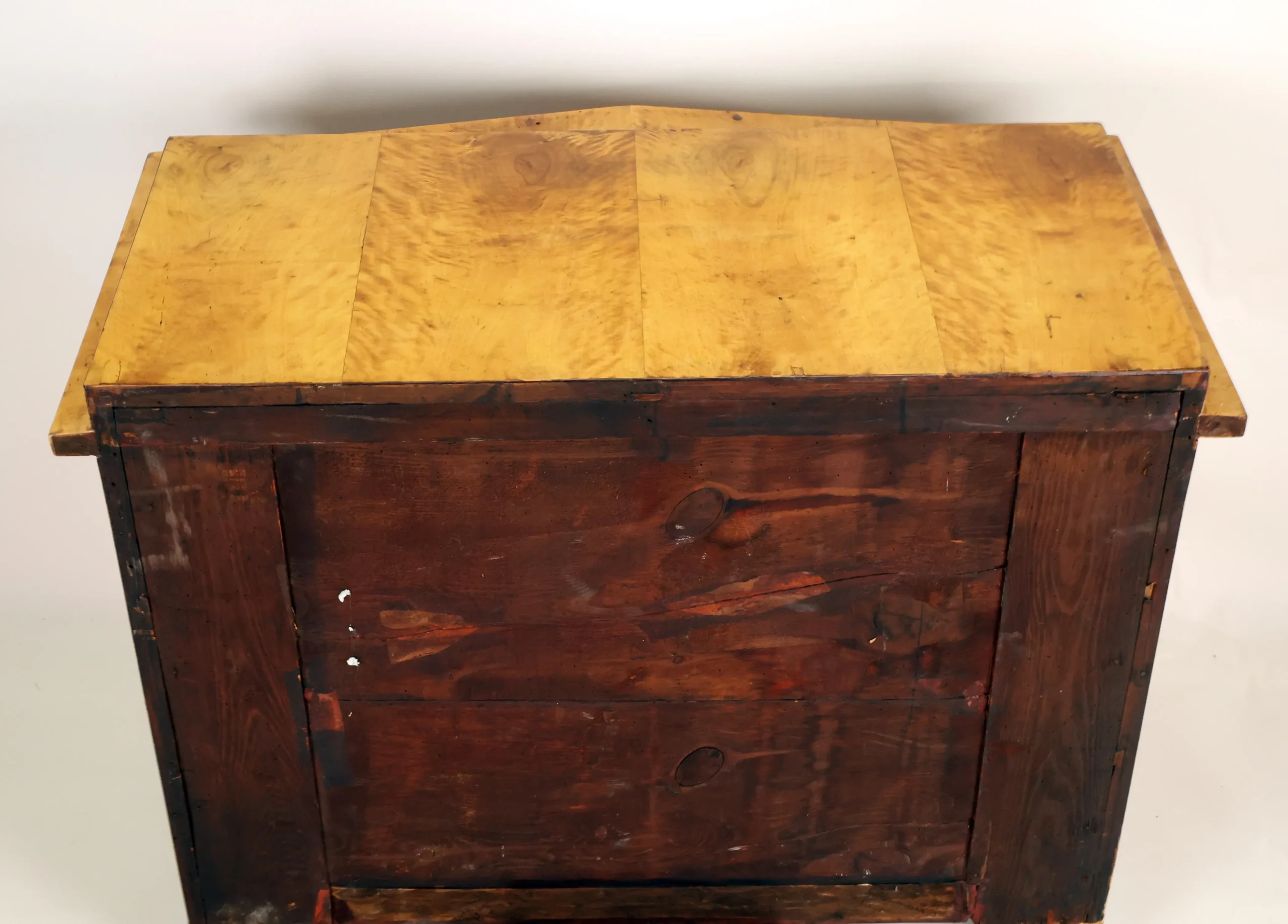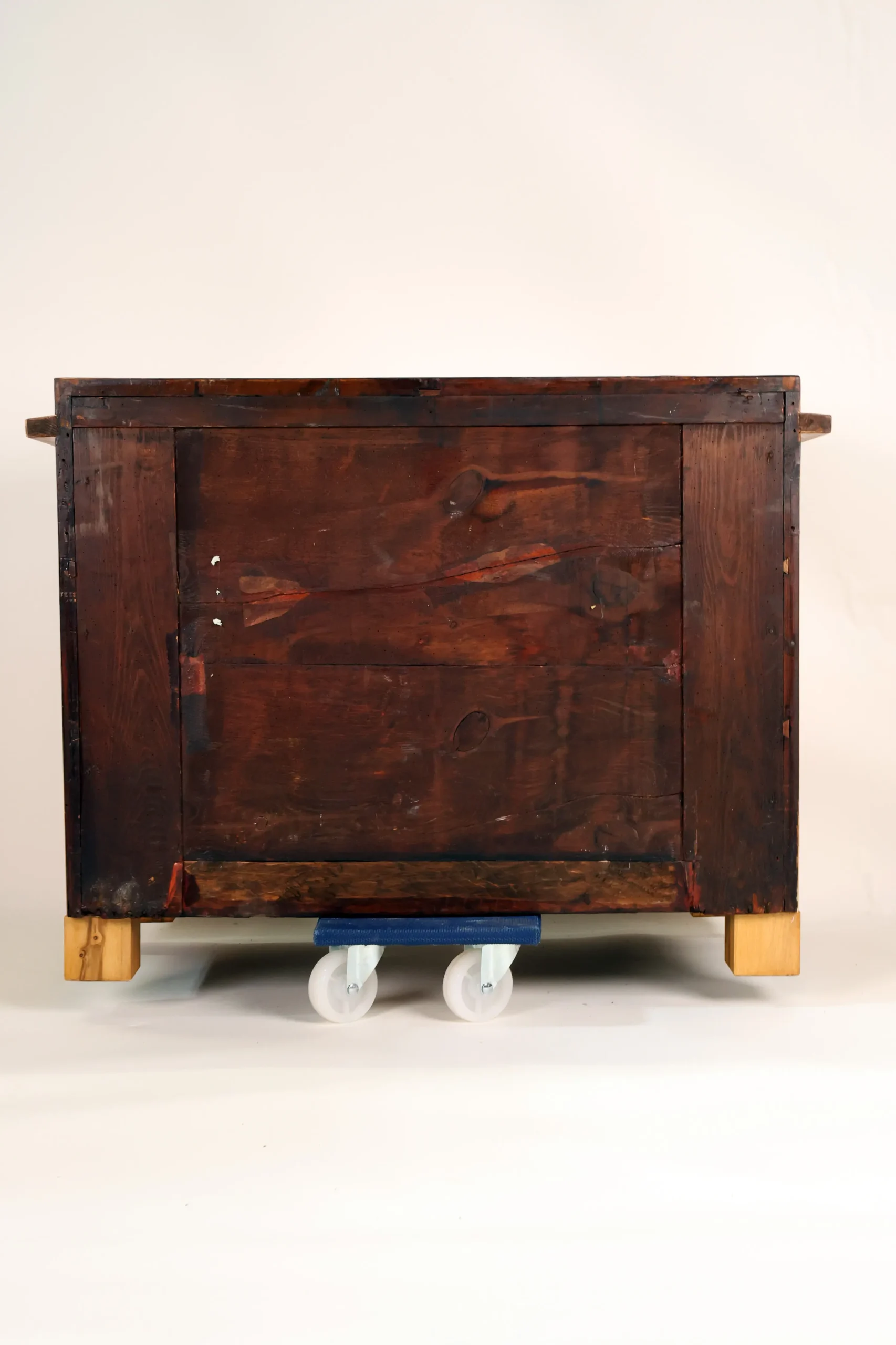 The piece rests on solid block feet and has been carefully restored and traditionally hand-polished with shellac, preserving its authentic historical character and beautiful natural patina.