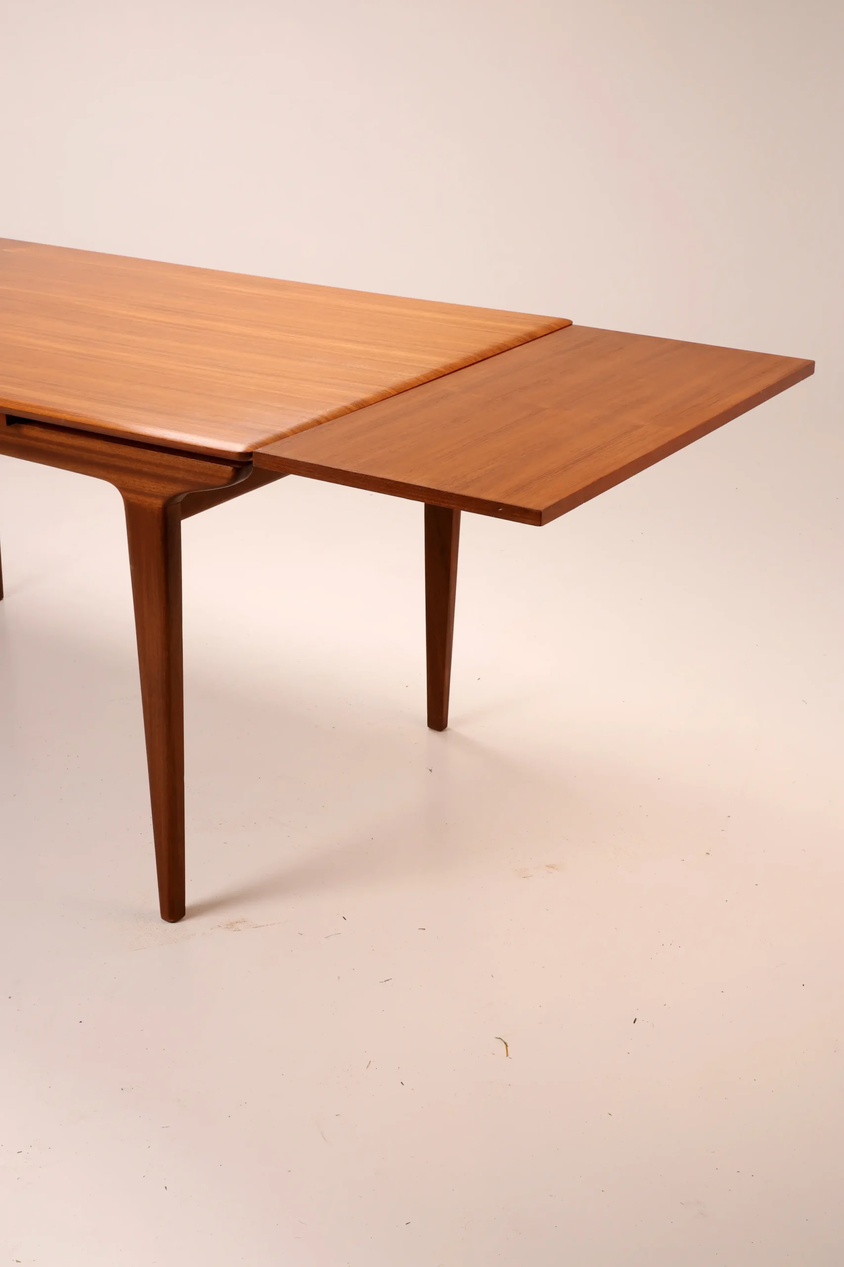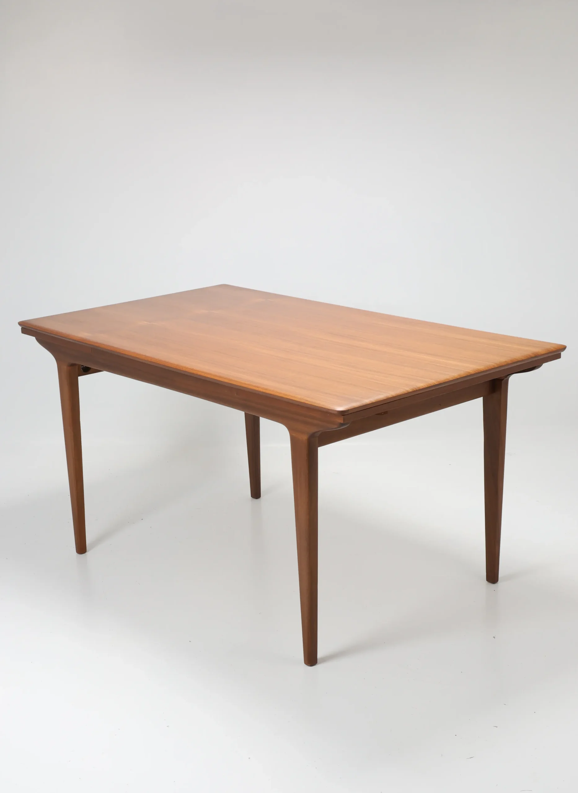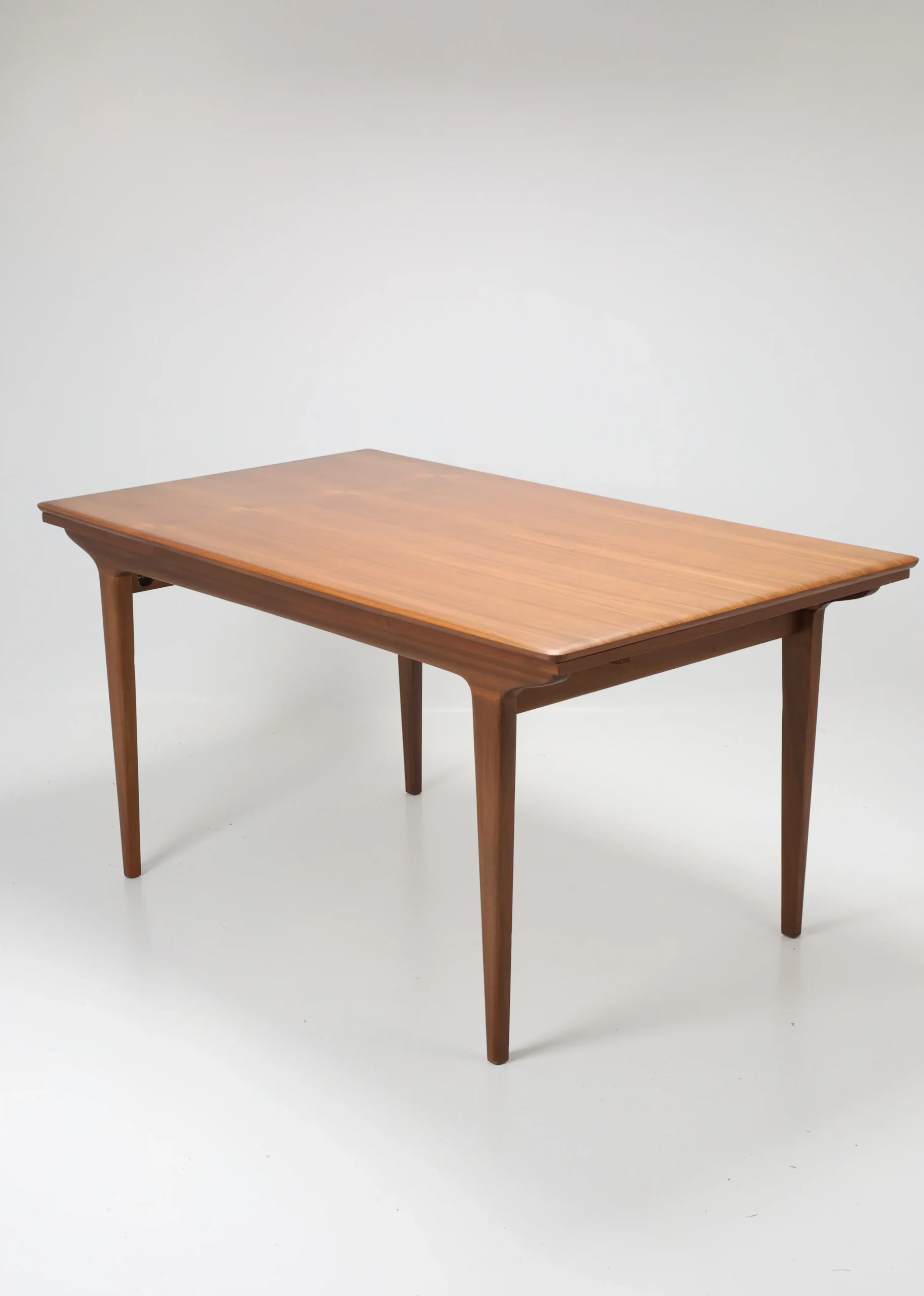 A refined Danish dining table crafted in solid teak, dating from the 1960s and executed in the style of Johannes Andersen. The piece reflects the hallmark qualities of Scandinavian modern design — clean lines, balanced proportions, and excellent craftsmanship.