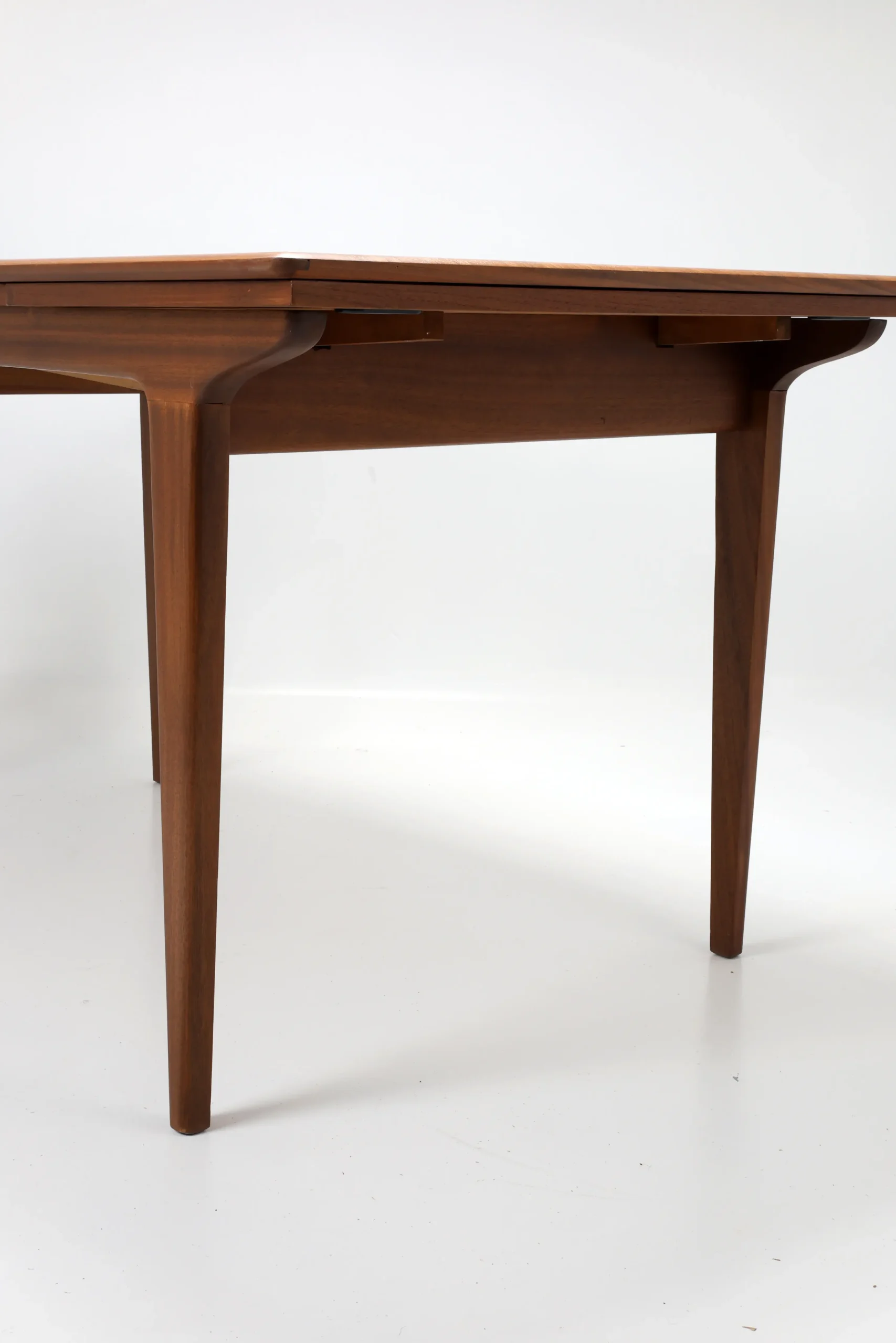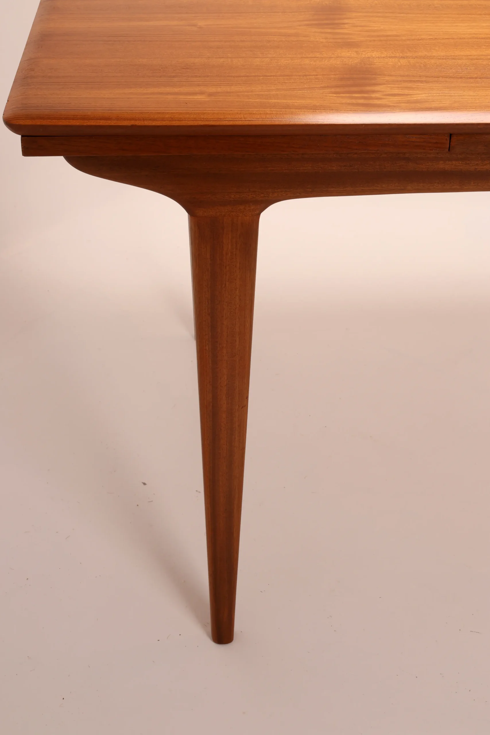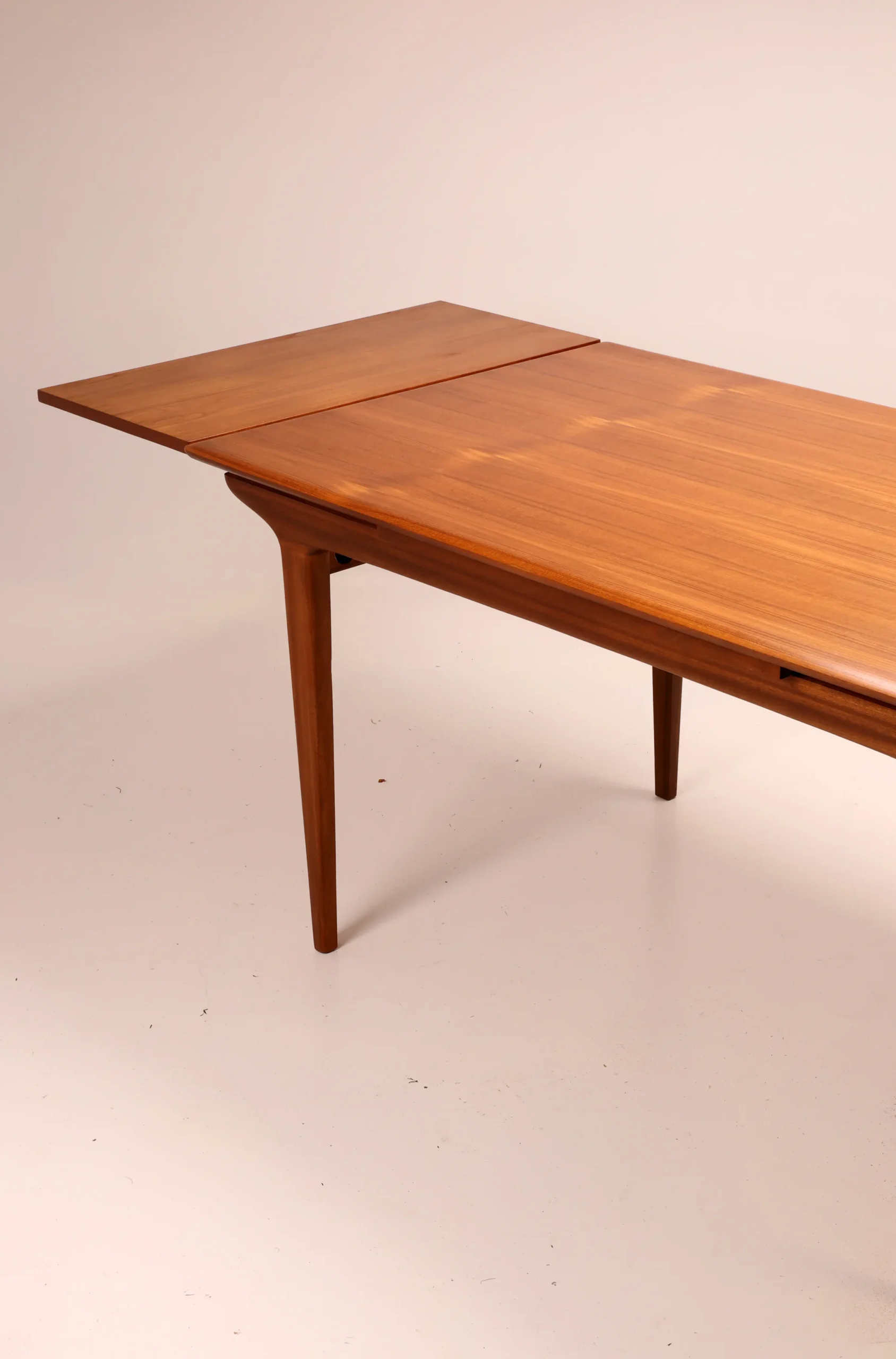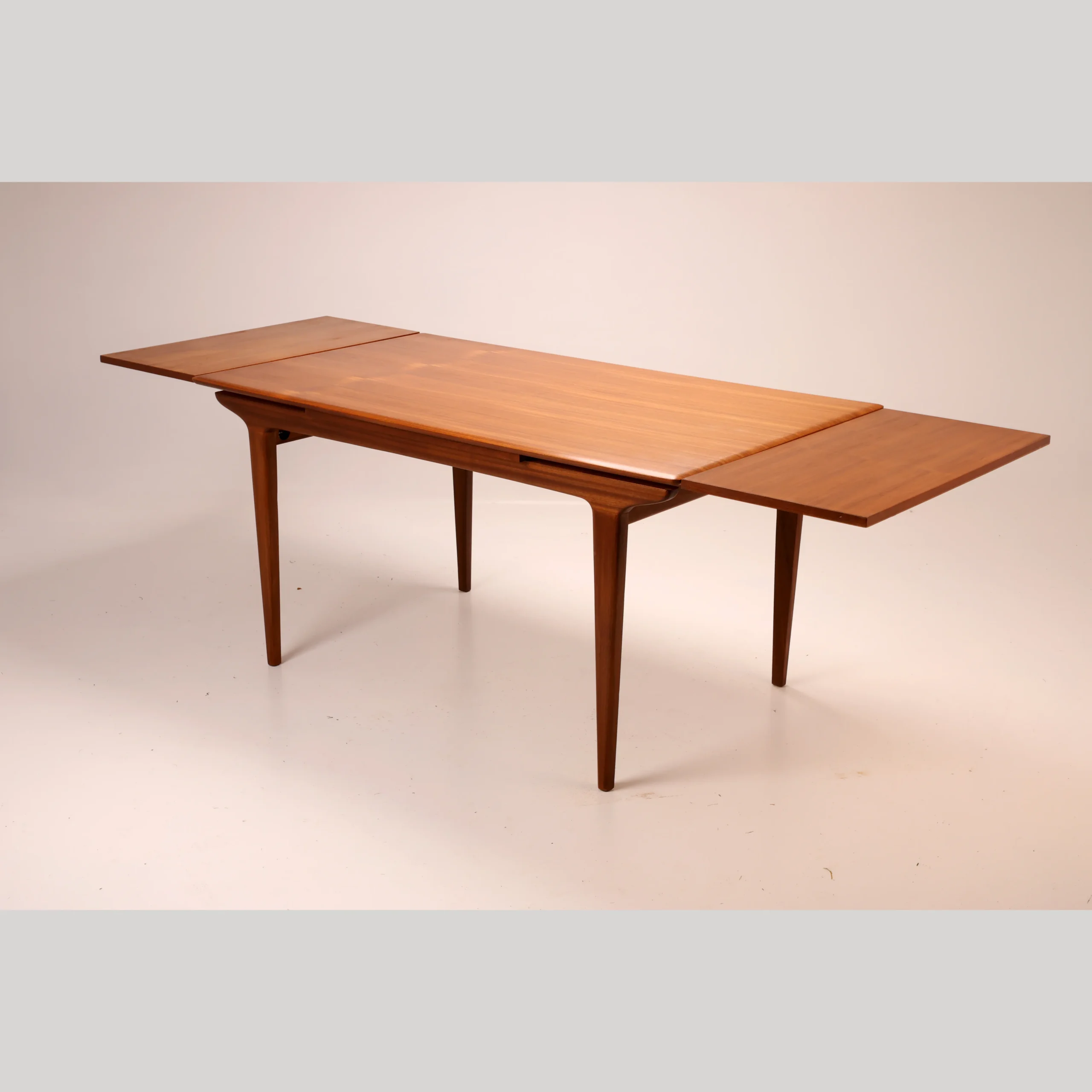 A refined Danish dining table crafted in solid teak, dating from the 1960s and executed in the style of Johannes Andersen. The piece reflects the hallmark qualities of Scandinavian modern design — clean lines, balanced proportions, and excellent craftsmanship.