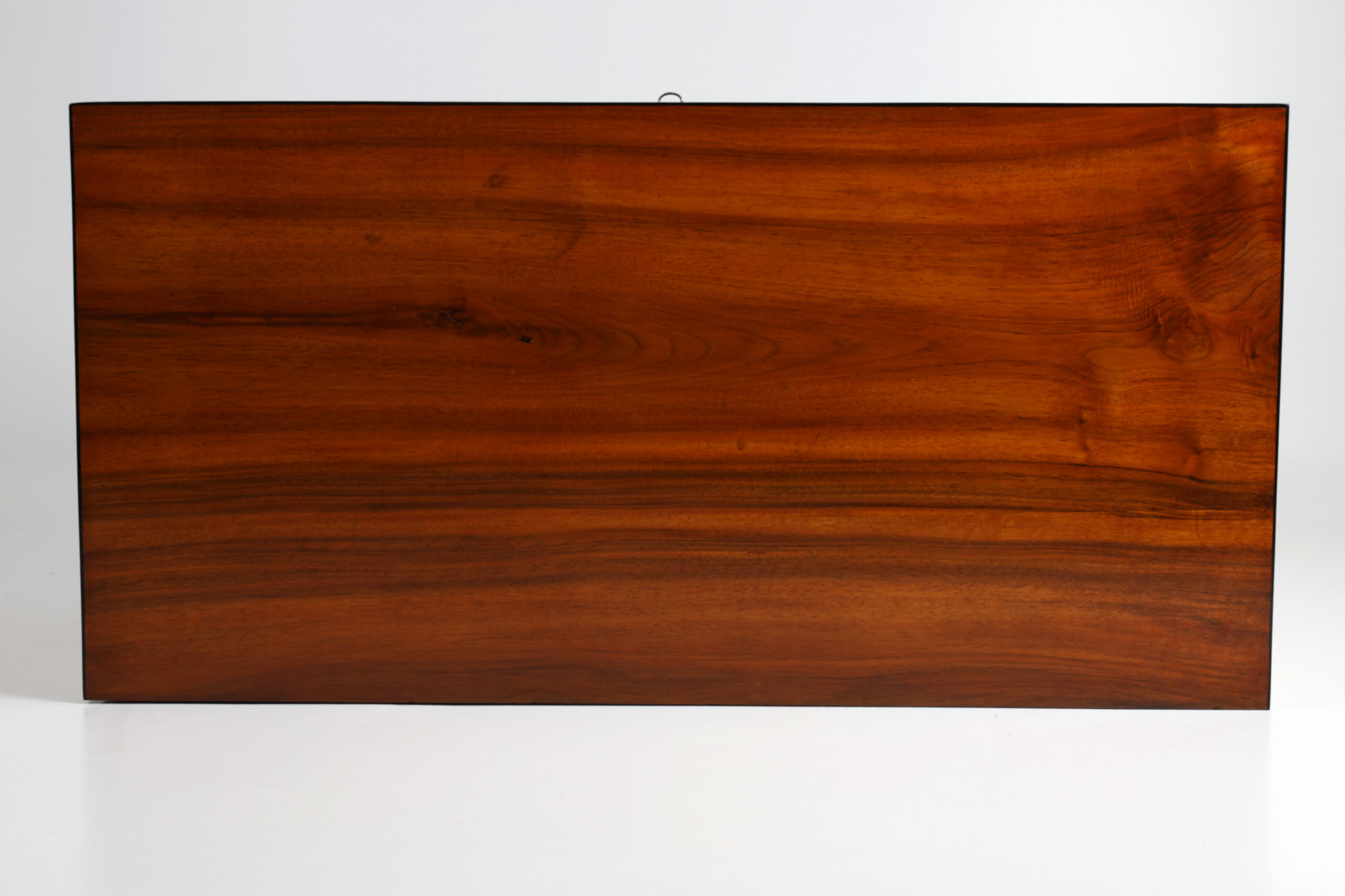 The surface has been carefully hand-polished using traditional shellac, resulting in a deep lustre that beautifully accentuates the natural character of the wood.