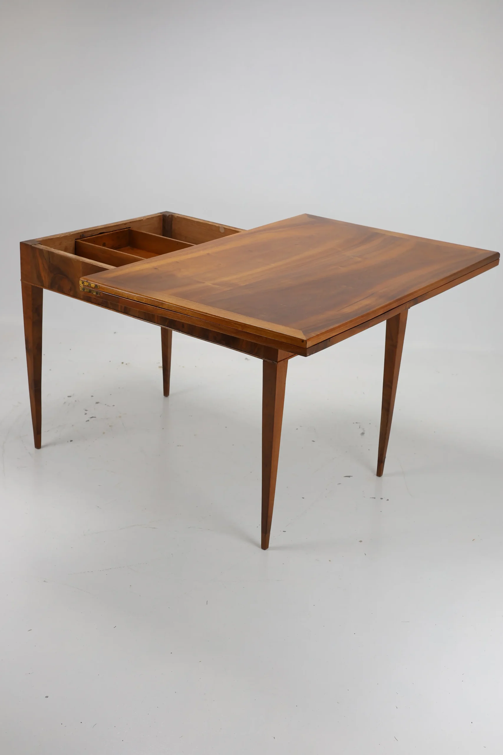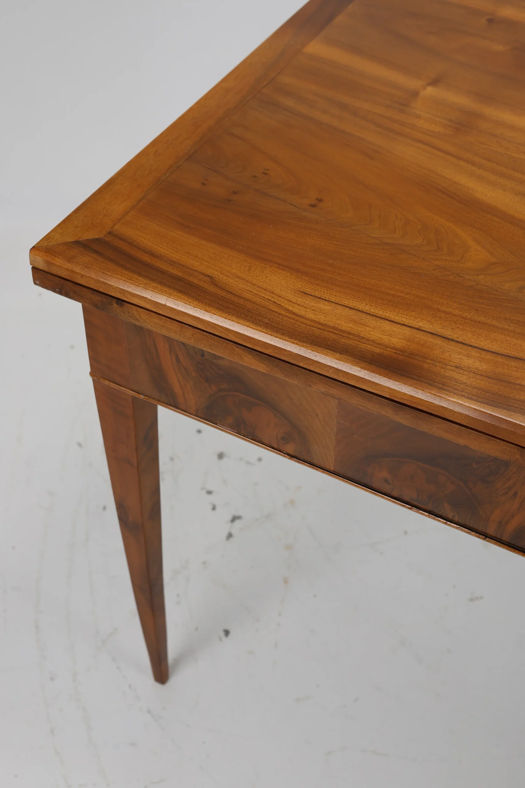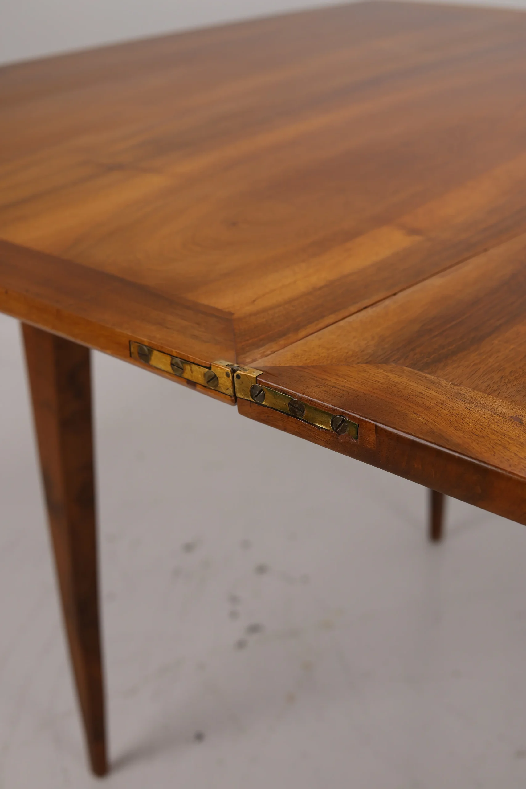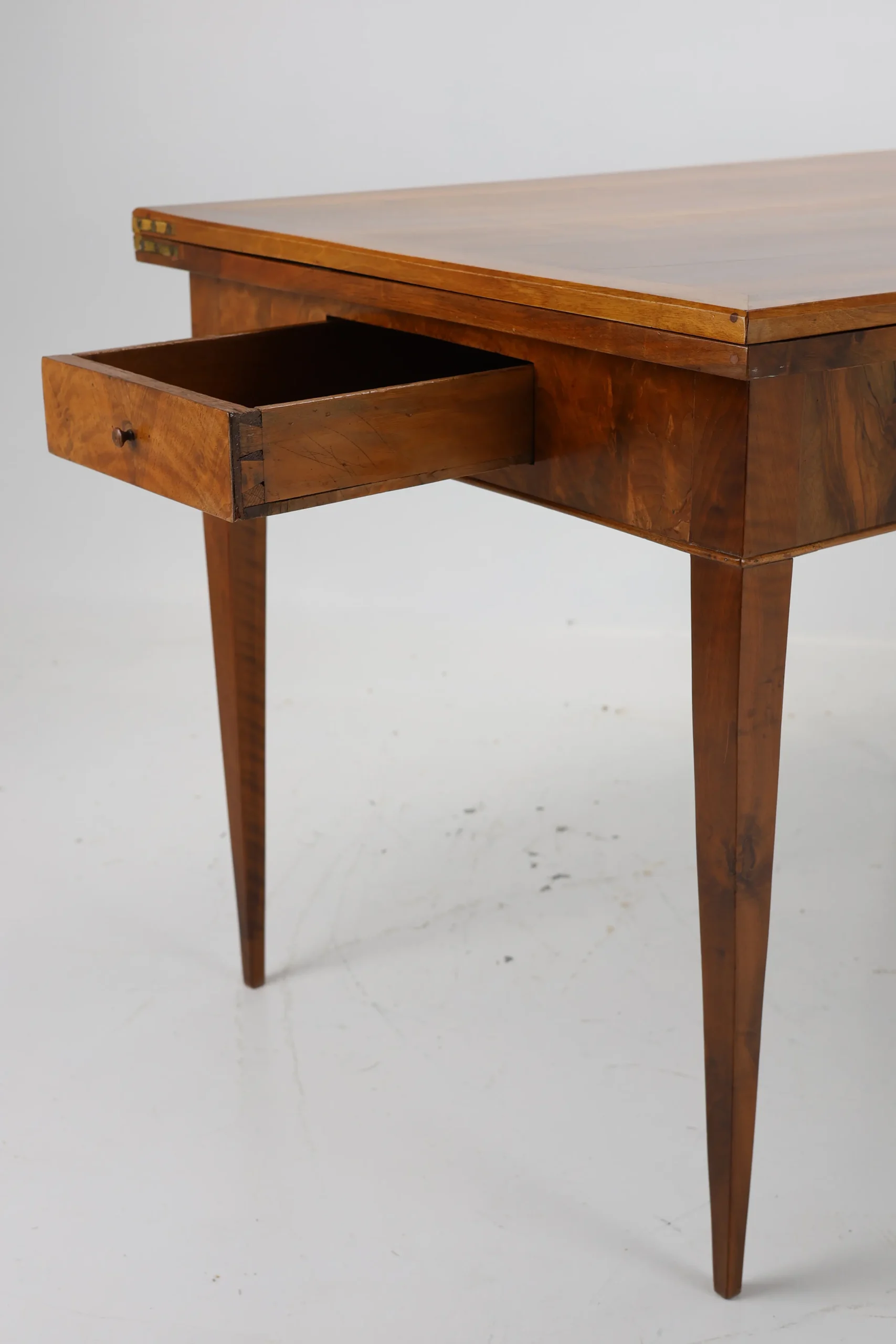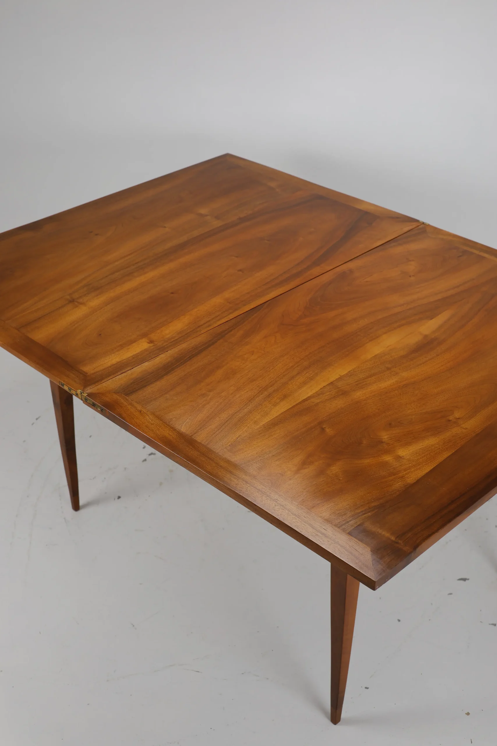 Original Biedermeier dining table, dating back to around 1820, is a true testament to the elegance and craftsmanship of the era. Made from solid walnut wood, it showcases a stunning and harmonious grain pattern that adds a touch of warmth and sophistication.