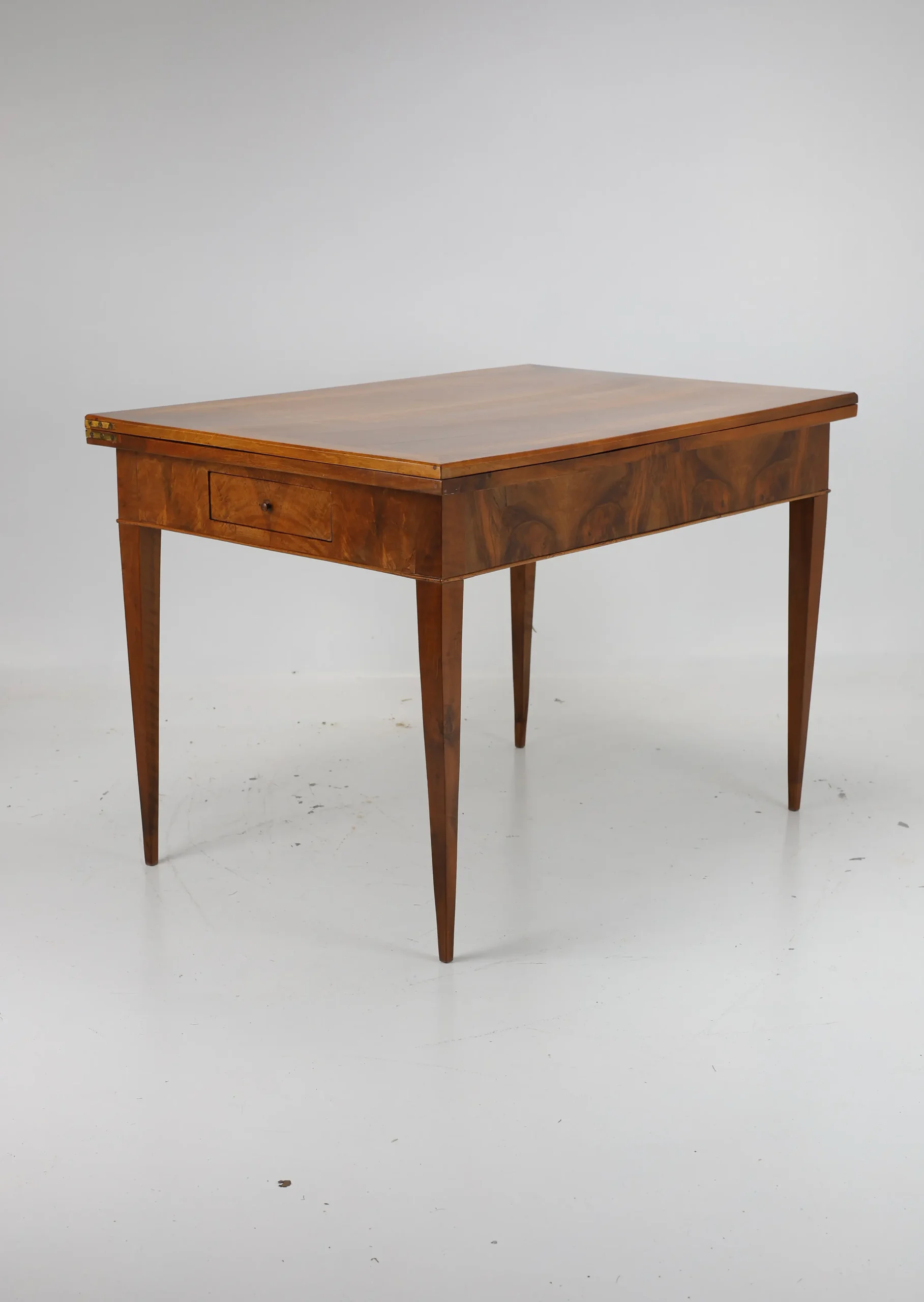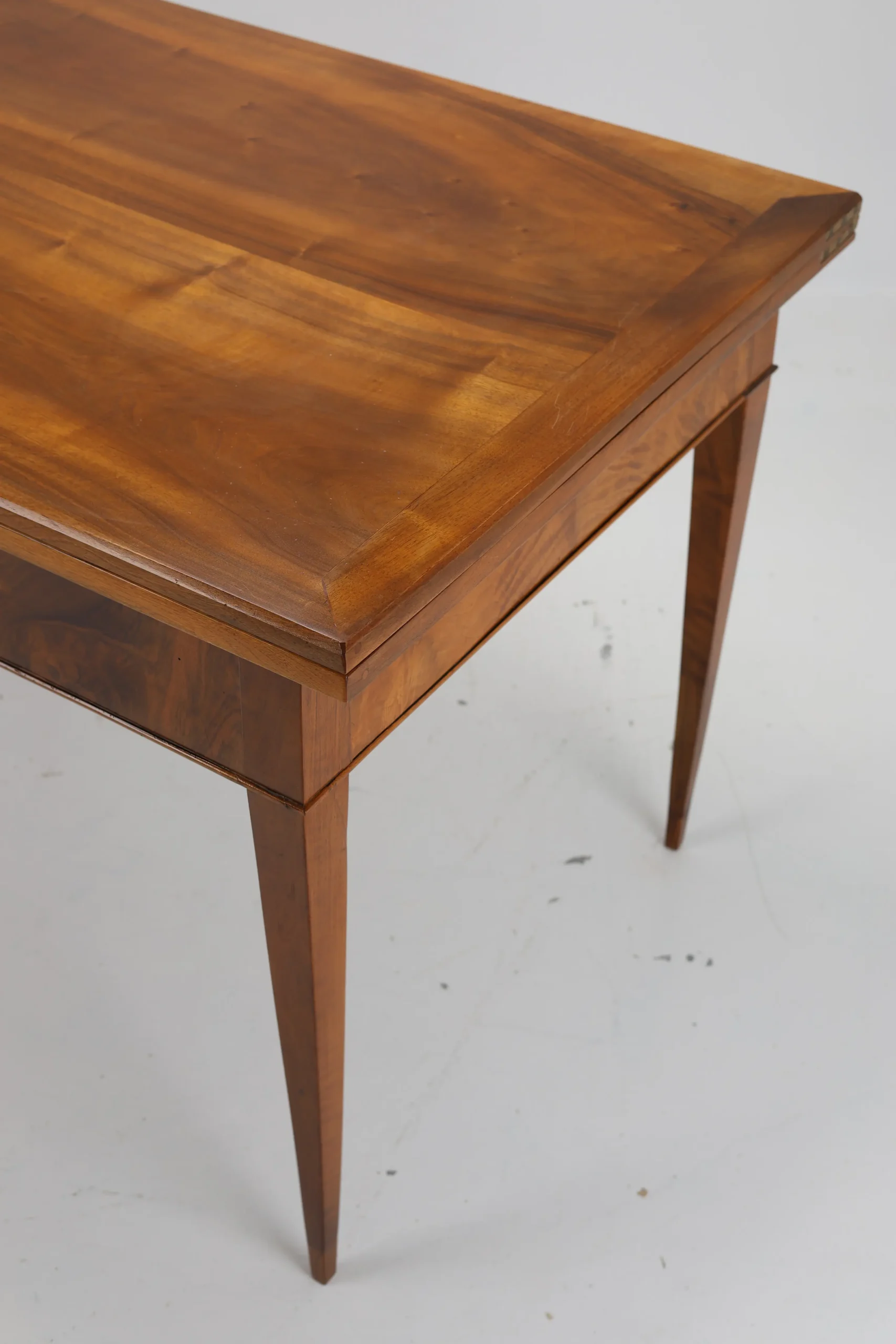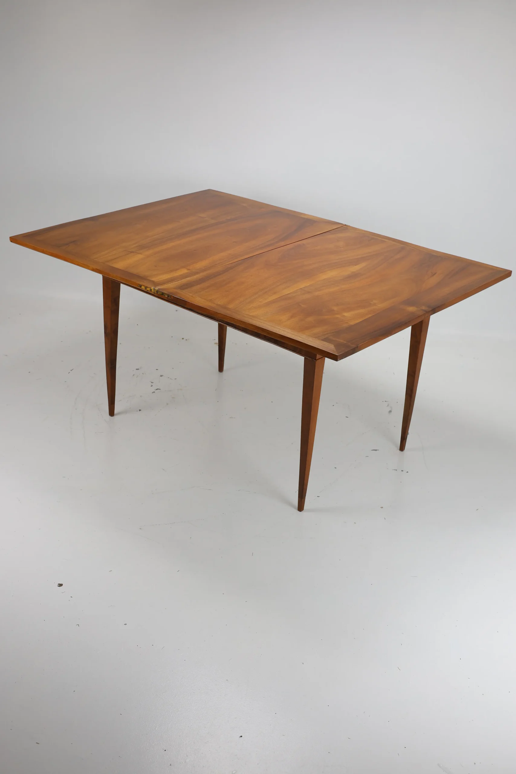 This original Biedermeier dining table, dating back to around 1820, is a true testament to the elegance and craftsmanship of the era. Made from solid walnut wood, it showcases a stunning and harmonious grain pattern that adds a touch of warmth and sophistication to any space.