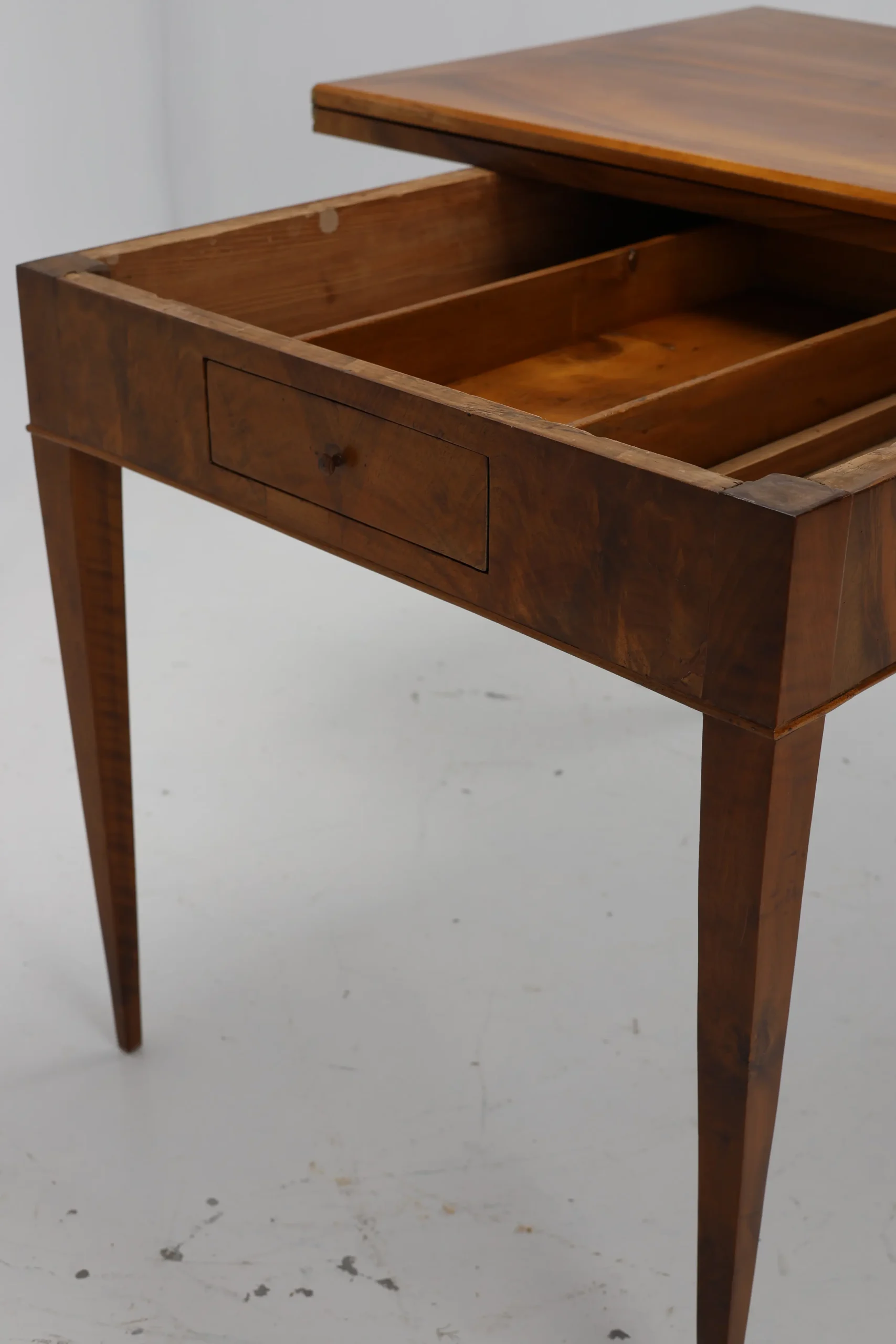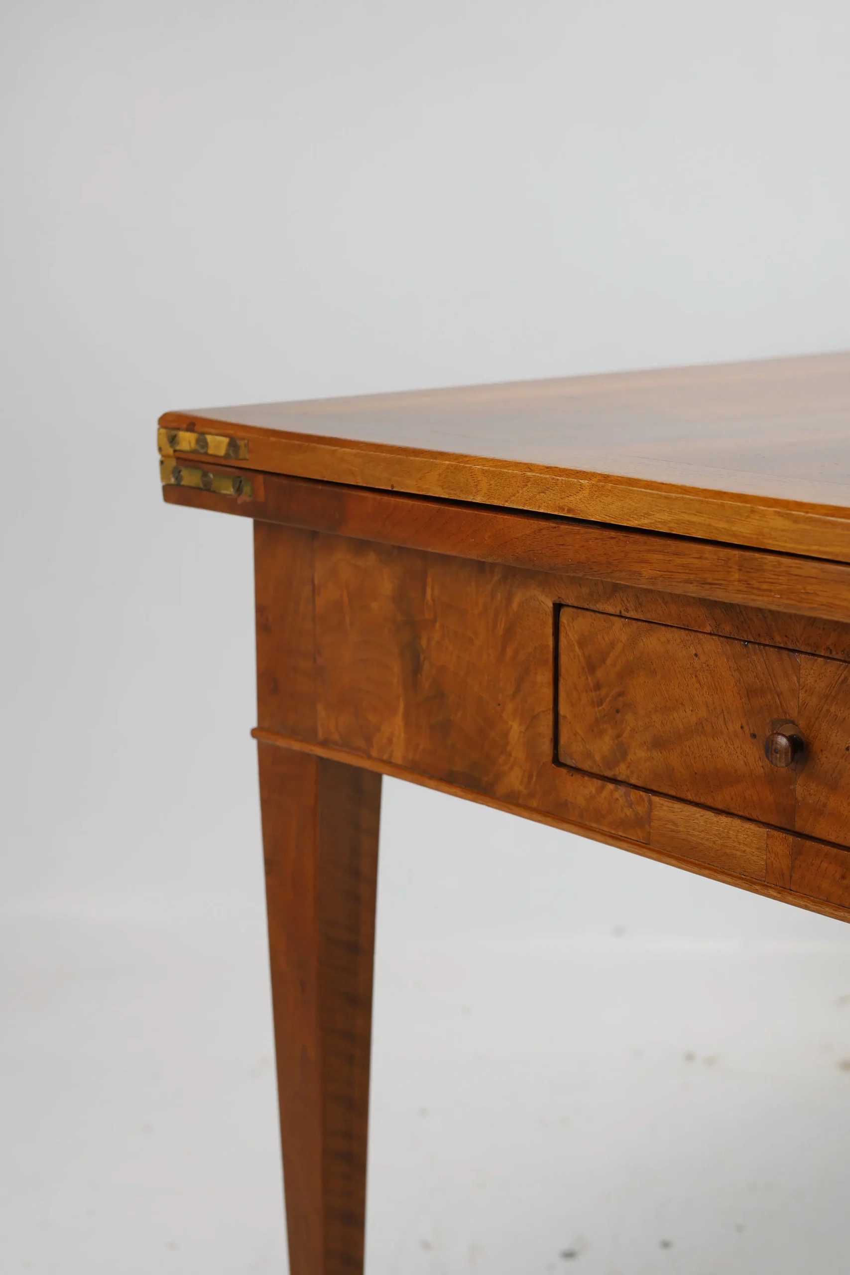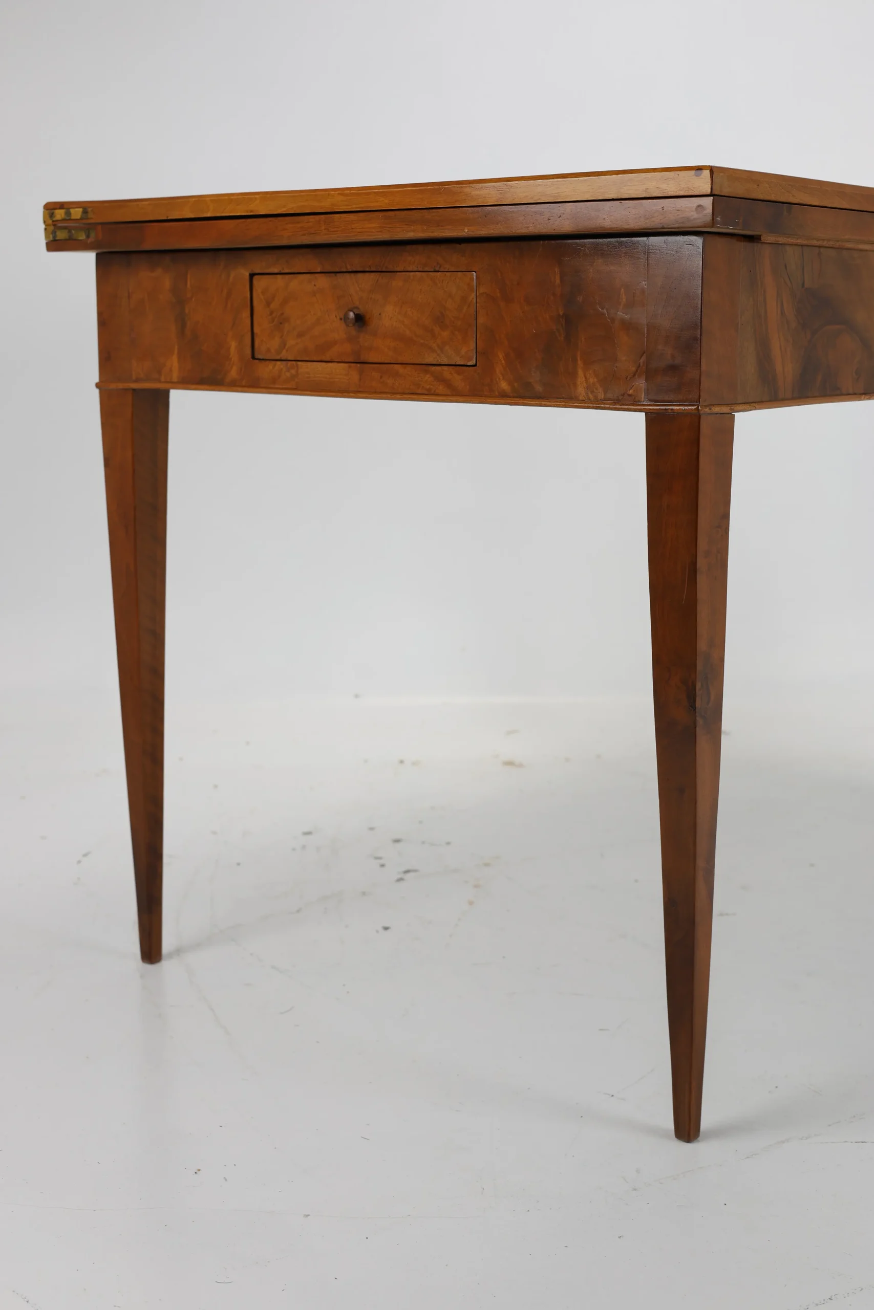 This original Biedermeier dining table, dating back to around 1820, is a true testament to the elegance and craftsmanship of the era. Made from solid walnut wood, it showcases a stunning and harmonious grain pattern that adds a touch of warmth and sophistication to any space.